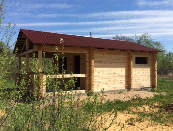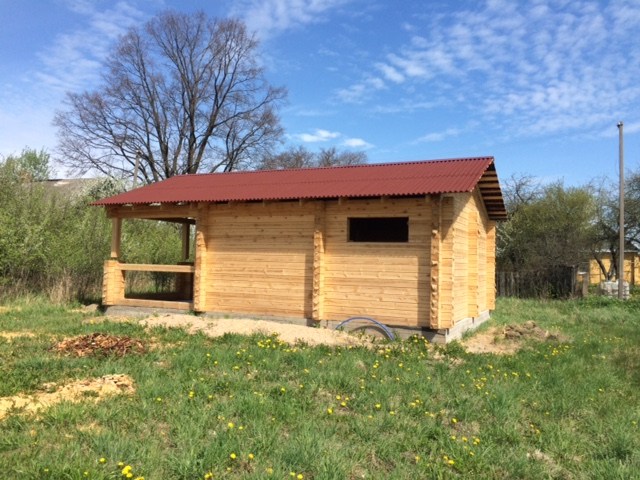 - сборка бани из бруса у заказчика, монтаж стропил и обрешетки;